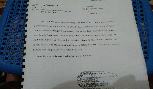 Menurut keterangan Kepala Kecamatan Tamalate, Hasan Sulaiman tepatnya 22 Maret 2017, menyatakan dengan tegas bahwa luas tanah pada Persil 13B DVV III Kohir 455 CI atas nama Paturungi telah tercoret sementara yang tercatat dalam buku C maupun buku F hanya ada nama Mattupuang seluas 0,3 Ha dan Pincara seluas 0,07 Ha atas Persil 13B DVV III Kohir 455 C1.