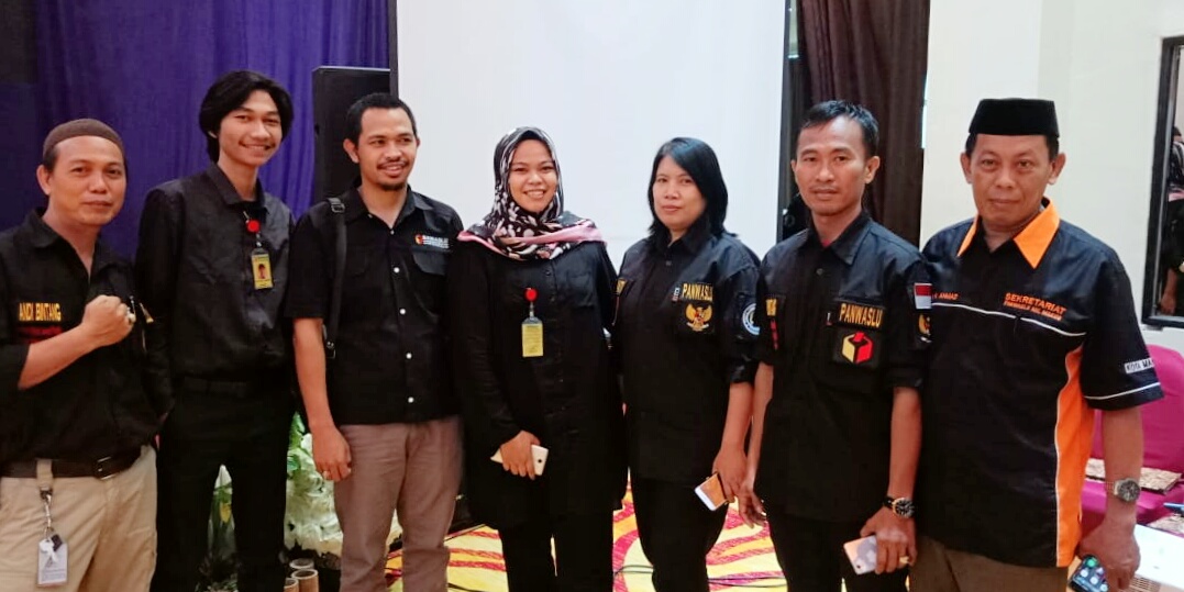 Ketua Pengawas Pemilu Kota Makassar Nursari (tengah) saat swafoto bareng Staf dan Komisioner Panwascam Mariso