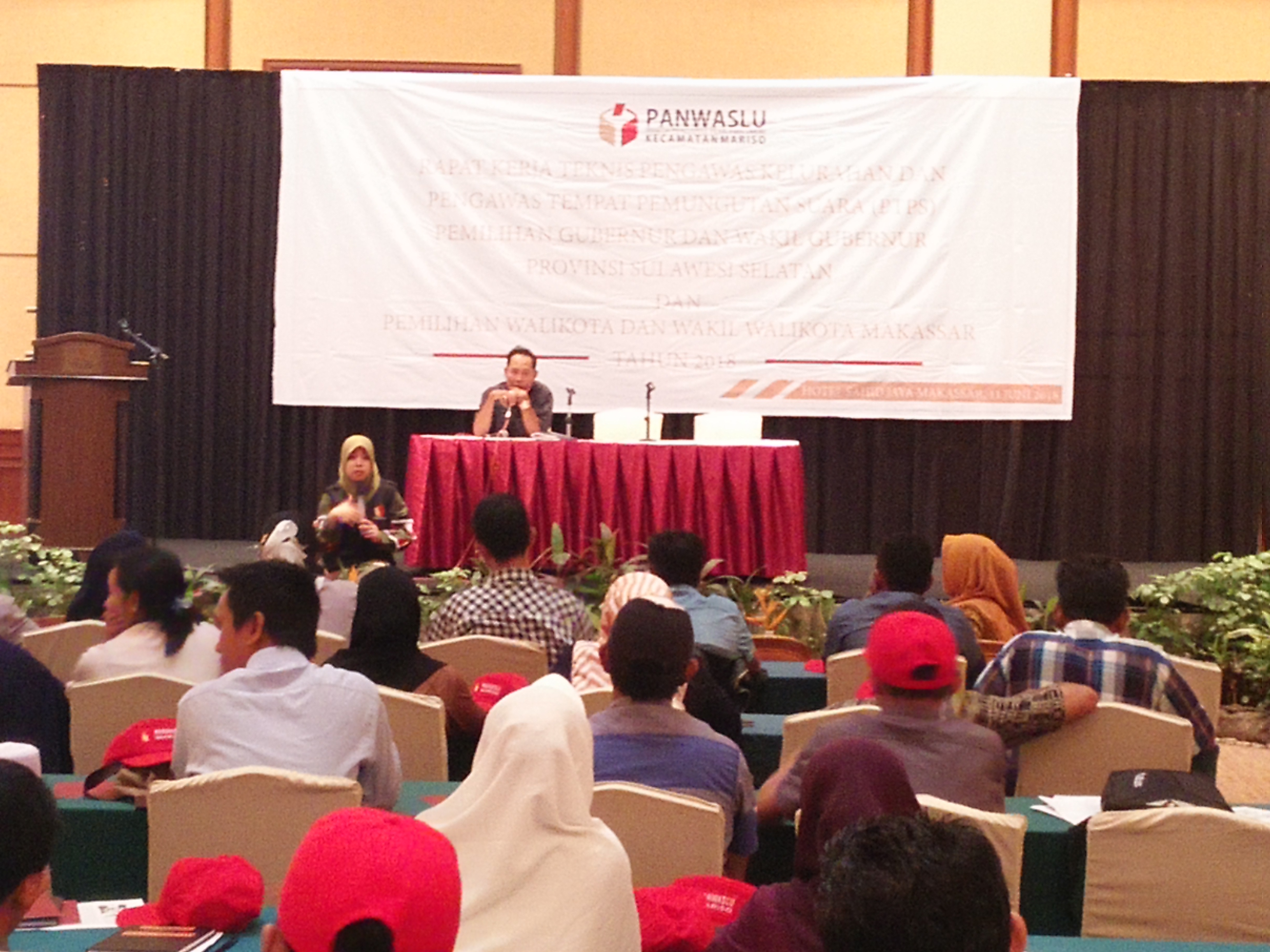 Kedai-Berita.com, Makassar — Sebanyak 117 orang pengawas tempat pemungutan suara (PTPS) serta sembilan orang Panitia Pengawas Lapangan (PPL) sekecamatan Mariso mengikuti rapat kerja teknis di Hotel Sahid, Senin, 11 Juni 2018