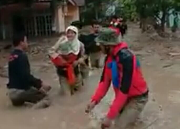 Langkah tersebut ditempuh oleh Relawan Mapala UMI, karena jalan menuju kampung masih tertimbun lumpur tebal, akibat banjir bandang dan longsor pada Senin 13 Juli malam lalu.
