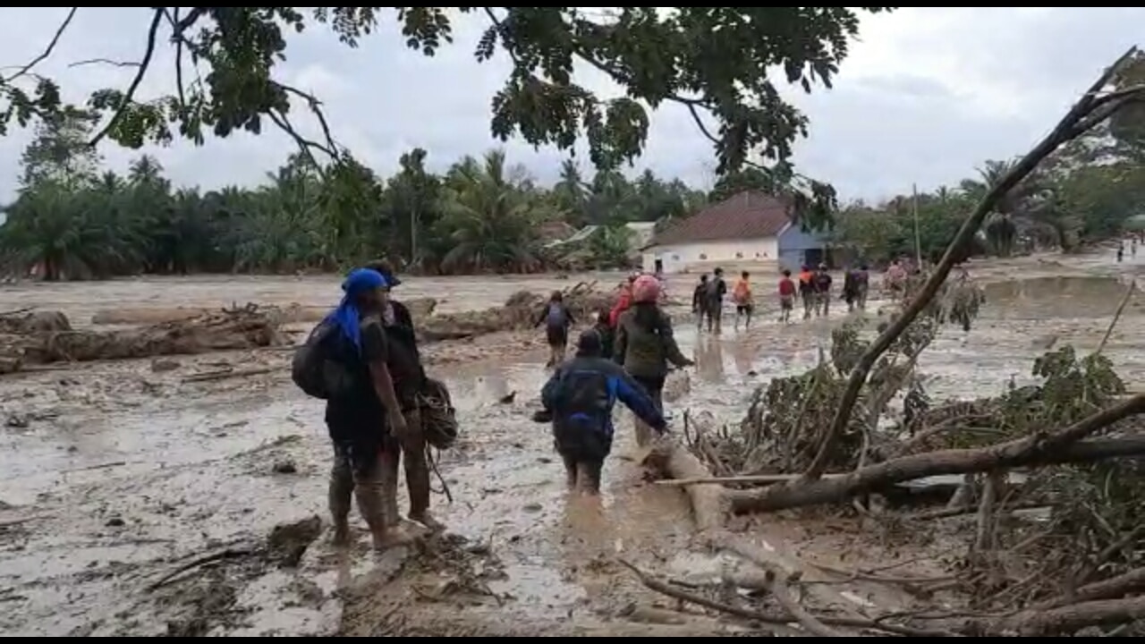 Sejumlah relawan kemanusiaan yang tergabung dalam mahasiswa pencinta alam (Mapala) UMI Makassar bersama Gabungan Pemuda Pencinta Alam (Gamapala) Kota Palopo menembus medan sulit salah satu desa terpencil yang terdampak banjir bandang di Masamba, Luwu Utara, Sulawesi Selatan.