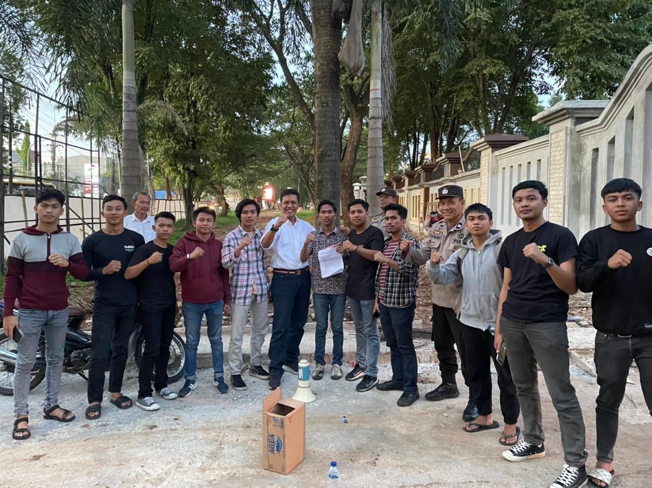 Direktur Reserse Kriminal Khusus Polda Sulsel, Kombes Pol Helmi menemui massa aksi Lontara Sulsel saat berdemo di depan Mapolda Sulsel, Senin 21 November 2022.