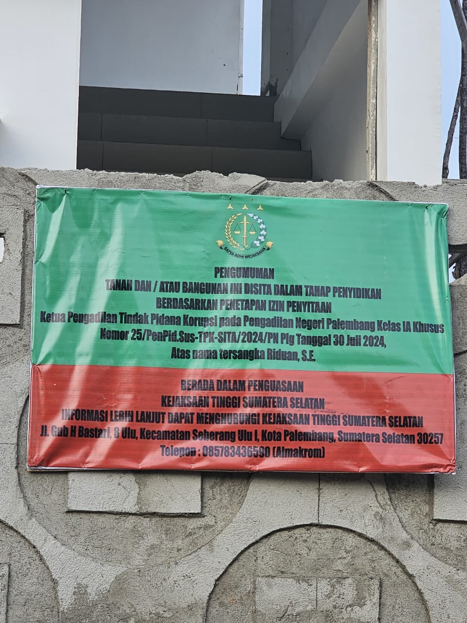 Vanny menyebutkan bahwa yang disita berupa, 1 Unit Rumah yang terletak di Perumahan Rasan Damai, Kota Sekayu, Kabupaten Muba, 1 bundel Sertifikat Tanah atas nama Tersangka R, serta 1 Akte Jual Beli atas nama Tersangka R.