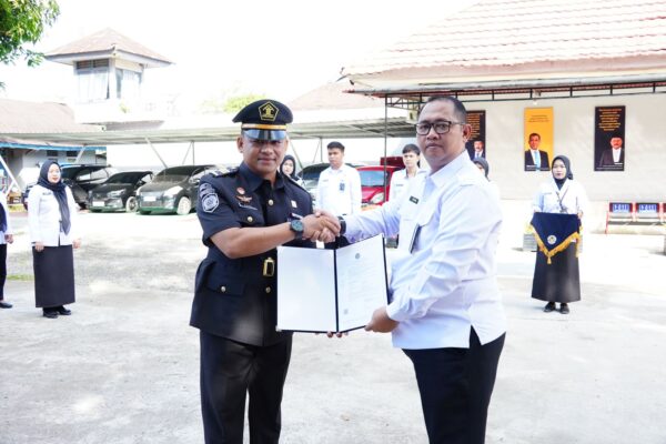 Rutan Kelas IIB Pangkajene menggelar Apel Penyematan Tanda Kenaikan Pangkat Pegawai yang berlangsung di Halaman Depan Rutan Pangkajene, Senin (28/4/2025).