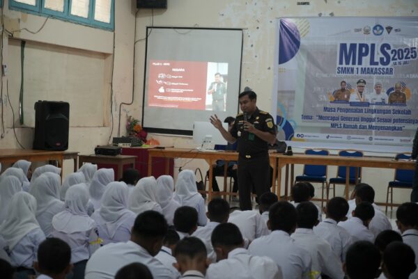 Sekitar 60 siswa SMK Negeri 1 Makassar duduk rapi, bukan untuk menerima pelajaran biasa, melainkan mendengarkan seorang jaksa berbicara bukan di ruang sidang, melainkan di ruang kelas. Para siswa tampak antusias, menyimak setiap pemaparan dengan seksama.